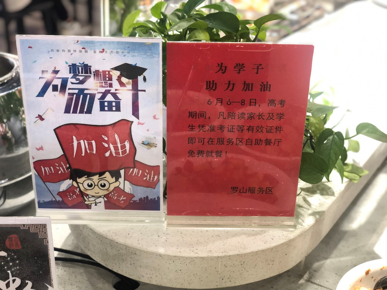 一是落實好職工“陪考假”,讓職工充分感受到公司人文關(guān)懷。二是為途經(jīng)服務(wù)區(qū)的考生和家長免費提供自助餐、客房休息、礦泉水、打印復(fù)印及餐食加熱等愛心服務(wù)。三是設(shè)立“高考綠色通道”專用車道,保證考試車輛快速、優(yōu)先通行。四是開展志愿活動,在考點附近設(shè)立愛心志愿助考點,向司乘人員免費發(fā)放礦泉水、防暑降溫藥和《助力高考倡議書》,呼吁途徑車輛駕駛員禁止鳴笛,為考生營造安靜和諧的應(yīng)試環(huán)境。