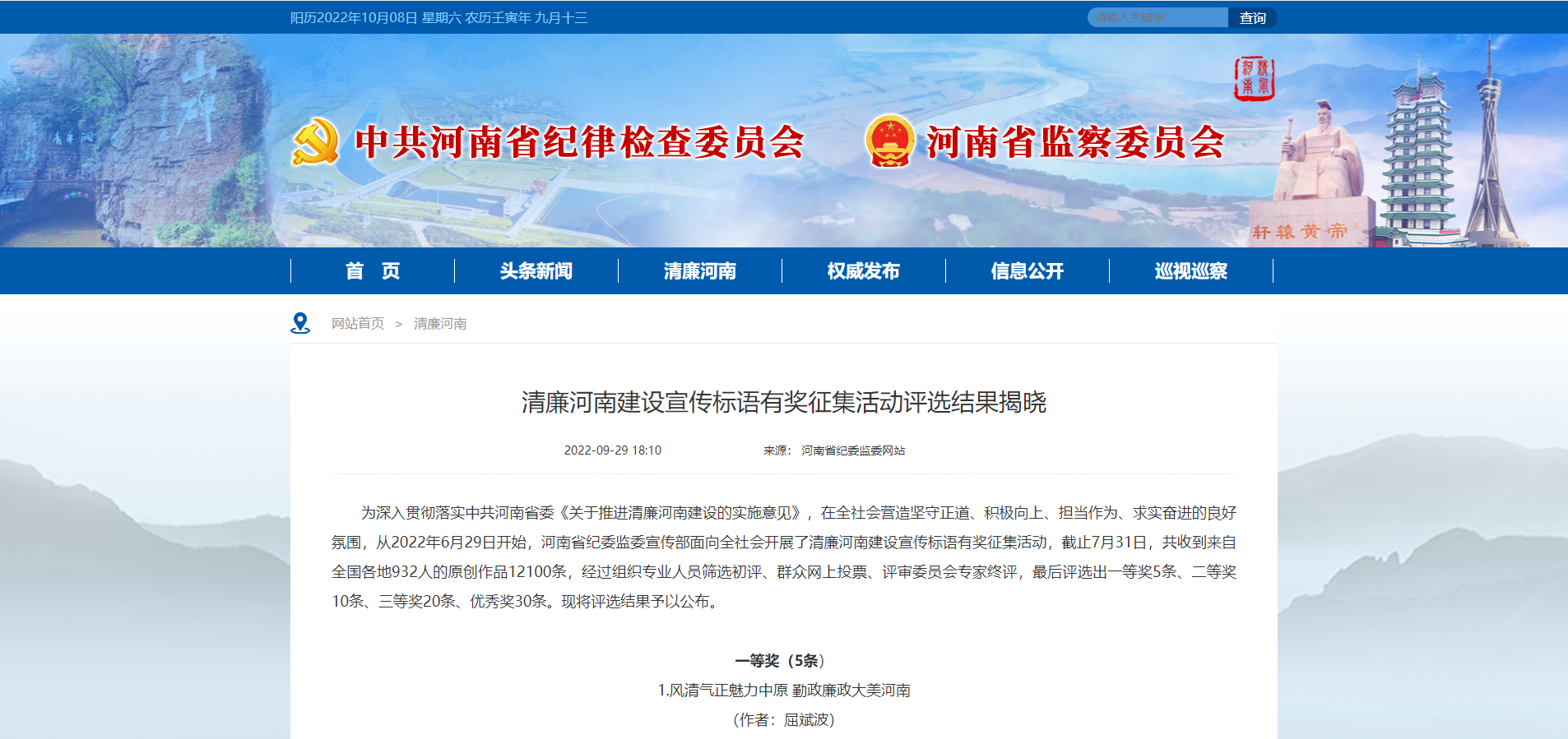 來源: 本站 發布時間: 2022-09-309月26日,省紀委監委宣傳部面向全社會開展的清廉河南建設宣傳標語征集活動評選結果揭曉,公司報送作品喜獲一、二等獎和優秀獎。