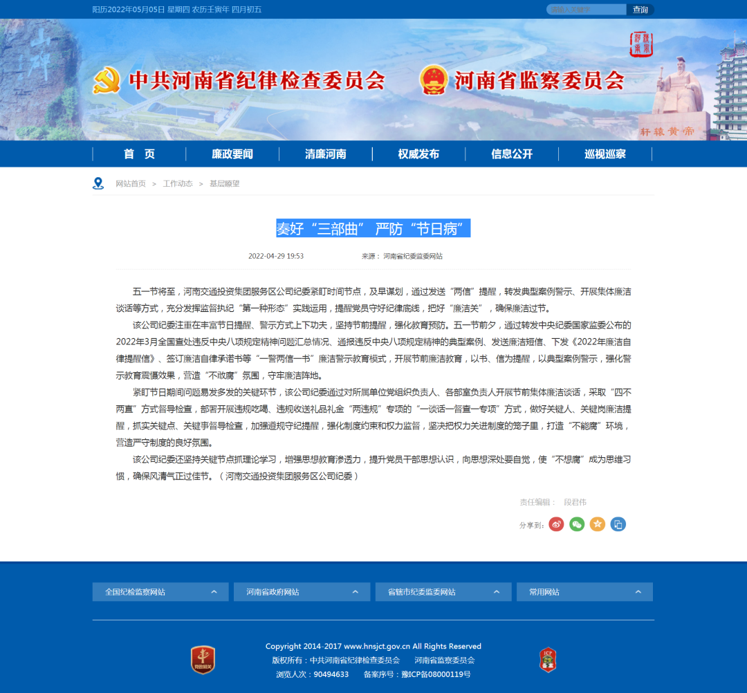 省紀委監委網站刊載公司紀委 《奏好“三部曲”嚴防“節日病”》工作信息