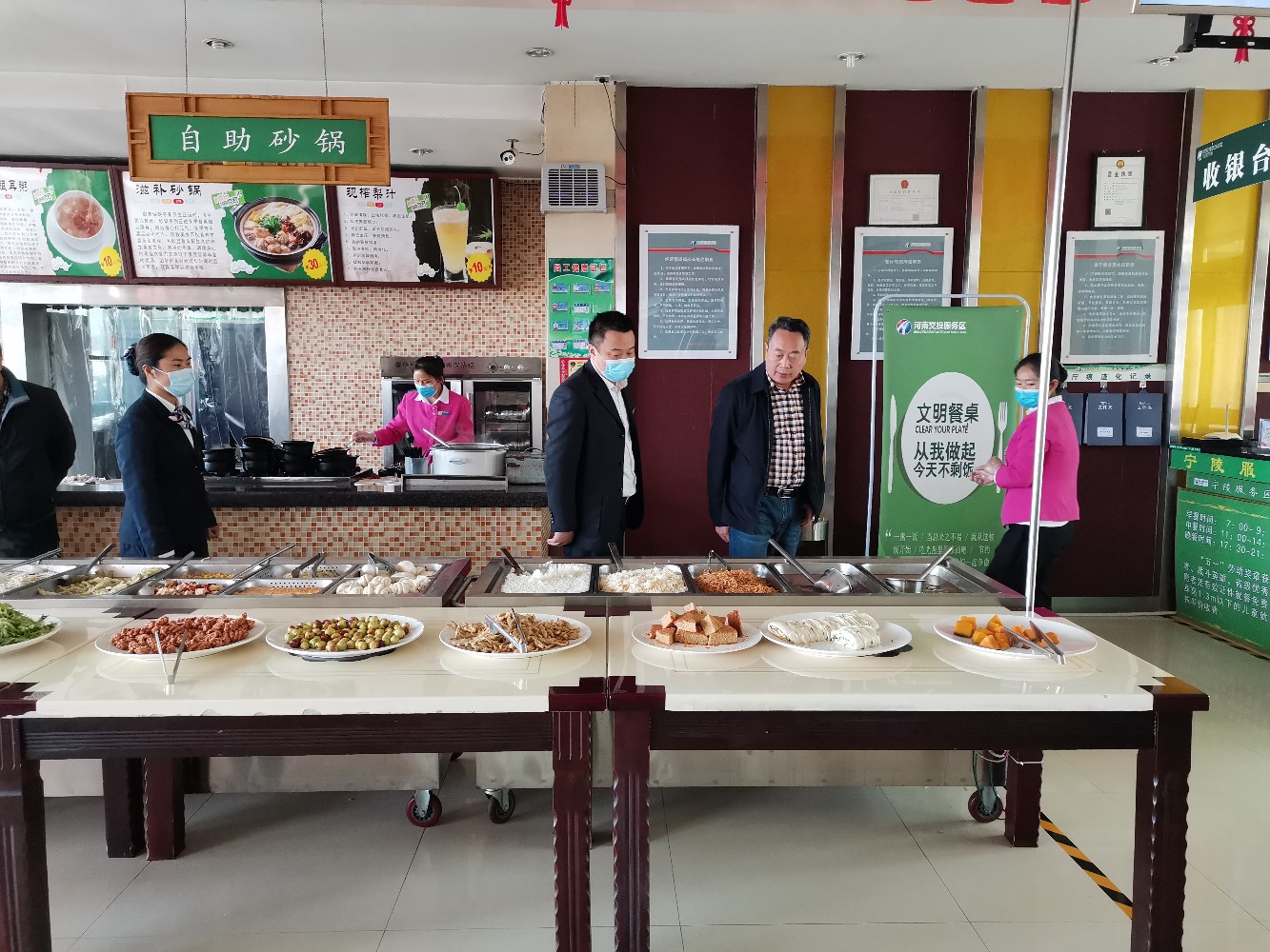 王宜偉書記、陳鵬部長(zhǎng)在直屬分公司紀(jì)委書記朱保軍、副總經(jīng)理武紅軍陪同下查看了服務(wù)區(qū)廣場(chǎng)、餐廳、廚原材料倉庫、粗加工間等場(chǎng)所,并現(xiàn)場(chǎng)召開座談會(huì),詳細(xì)了解服務(wù)區(qū)黨風(fēng)廉政建設(shè)、廉潔風(fēng)險(xiǎn)防控、企務(wù)公開、經(jīng)營(yíng)運(yùn)行、員工生活等情況,認(rèn)真聽取基層干部員工的意見建議。最后,王宜偉書記就基層服務(wù)區(qū)認(rèn)真抓好下一步工作提出要求: