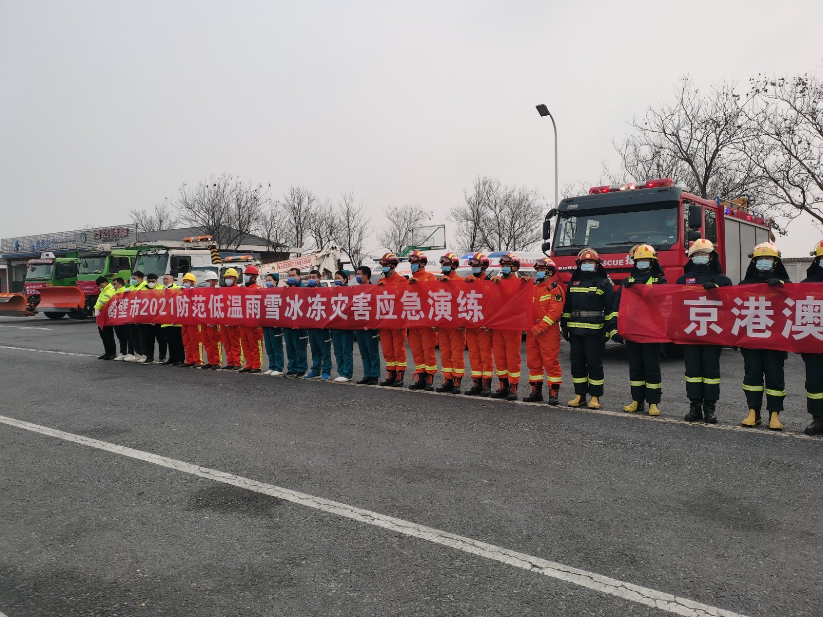 鶴壁市防范低溫雨雪冰凍天氣災害應急演練在鶴壁服務區進行