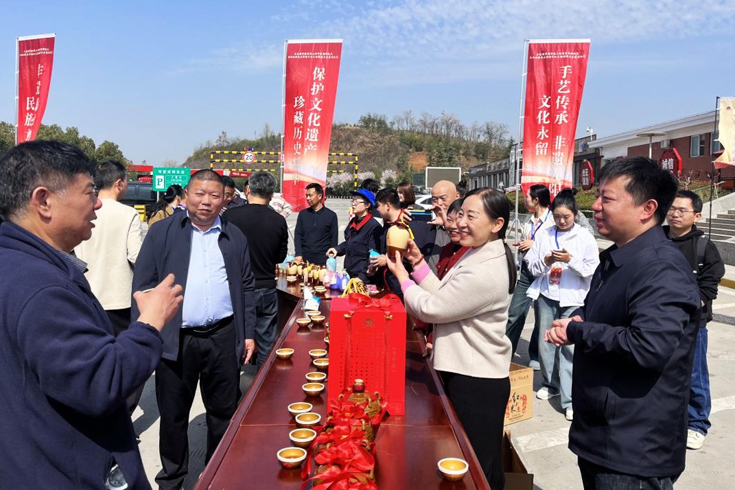 南陽市非物質文化遺產(chǎn)保護傳承工作會暨全市非遺數(shù)字化專題培訓班、版權保護現(xiàn)場會人員到西峽服務區(qū)黃酒文化銷售專區(qū)觀摩交流
