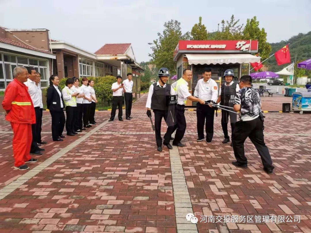 9月18日,鞏義服務(wù)區(qū)在北區(qū)廣場(chǎng)開展“反恐防暴”演練。演練模擬了歹徒?jīng)_擊服務(wù)區(qū),服務(wù)區(qū)立刻啟動(dòng)應(yīng)急預(yù)案,疏散人群,保安迅速用防暴鋼叉、盾牌、防刺手套等防暴裝備制服了歹徒。演練前后,服務(wù)區(qū)組織人員集中講解了應(yīng)急預(yù)案的詳細(xì)措施,防暴裝備的使用方法及實(shí)戰(zhàn)技巧。 通過此次演練,加強(qiáng)了服務(wù)區(qū)員工自我保護(hù)意識(shí)及自救互救的能力,同時(shí)增強(qiáng)了憂患意識(shí),時(shí)刻緊繃反恐防范這根弦,為建國70周年?duì)I造安全穩(wěn)定高速公路環(huán)境。