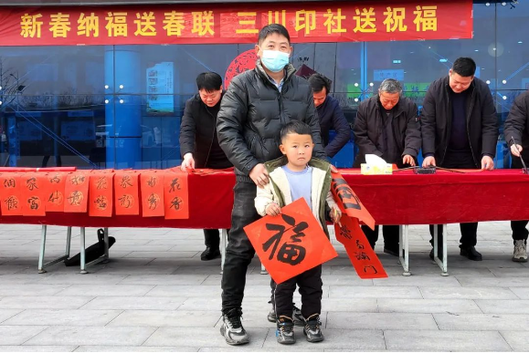 活動(dòng)現(xiàn)場(chǎng),書法家們現(xiàn)場(chǎng)揮毫潑墨,一副副寓意吉祥的對(duì)聯(lián)、一行行俊逸的書法作品躍然紙上。吉祥的文辭、濃濃的墨香引來了司乘人員的圍觀。服務(wù)區(qū)工作人員將寓意著辭舊迎新、平安祝福的春聯(lián)送至司乘人員手中,大家拿著一幅幅飽含美好祝愿的春聯(lián),臉上布滿了笑容。