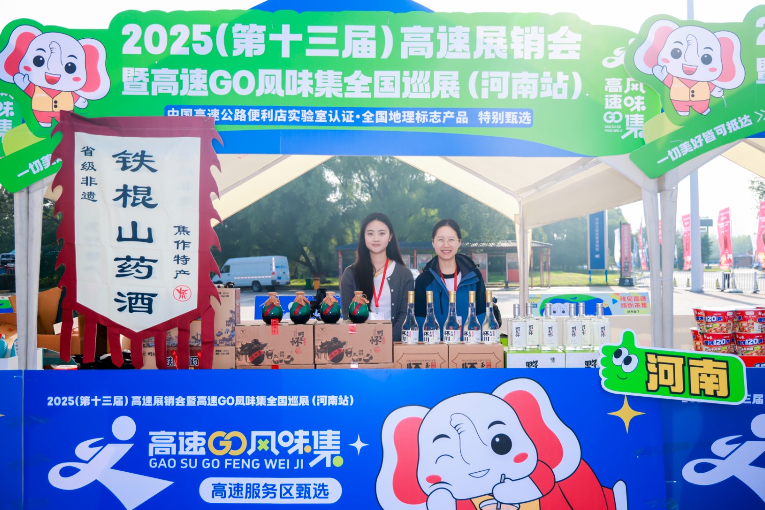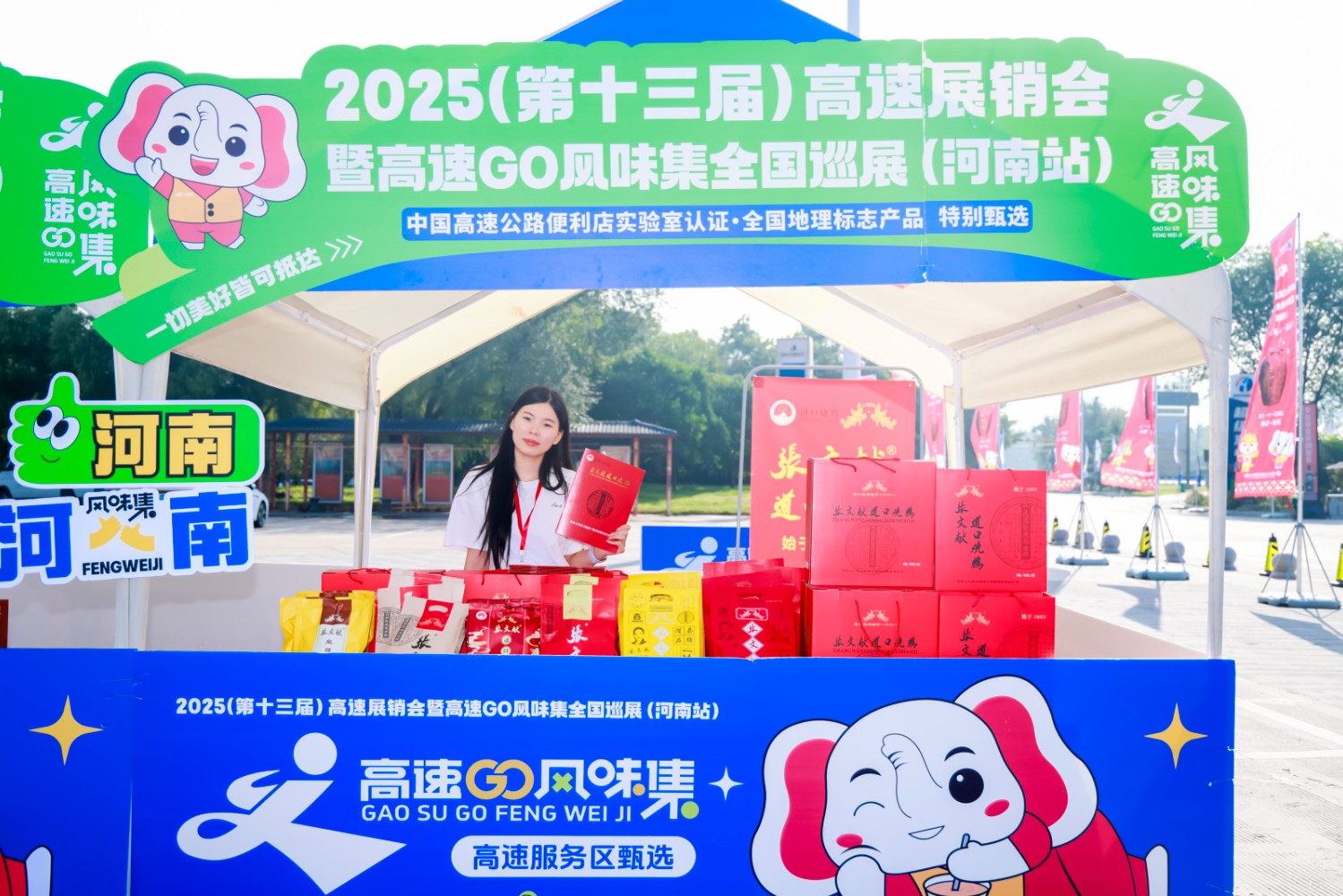開幕儀式現場,河南交投服務區便利店品牌升級成果尤為亮眼。以融合河南地域文化與現代商業基因的“小象達達” IP 形象為核心,服務區便利店不僅在視覺設計上充滿 “河南味”,更在商品選品上聚焦本土特色——從首次在展銷會隆重推出的公司自有品牌“溢路泉”系列山泉水、“溢路泉”泡茶水,到豫東的開封花生糕和京遙胡辣湯、豫西的仰韶酒、豫南的石龍堰黃酒、豫北的山藥酒和道口燒雞、豫中的好想你棗,100余種河南名優土特產集中亮相,讓過往司乘在停車休憩之余,能輕松帶走“河南味道”。