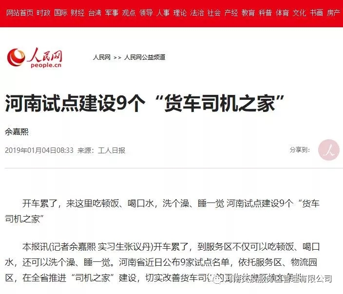 河南貨車司機的福利來了!開車到高速服務區休息,不僅可以吃頓飯,還可以洗個澡、睡一覺,并且再也不用擔心被偷油偷貨了。日前,人民網、大河網等媒體以《河南試點建設9個“貨車司機之家”》為題,報道了公司所屬安陽服務區等9地試點“司機之家”建設的新聞。河南是全國重要的交通樞紐省份。最新統計數據顯示,每年途徑河南的貨車司機人數達到52萬人次。1月4日,省總工會和省交通運輸廳聯合印發通知,在公司所屬京港澳高速安陽服務區等9個地方試點“司機之家”建設,切實改善貨車司機的工作休息環境和條件。河南是“司機之家”建設全國首批10個試點省份之一,旨在讓貨車司機行車途中能更好地“喝口熱水、吃口熱飯、洗個熱水澡、睡個安穩覺”。去年10月16日,河南省首家高速公路“司機之家”試點在京港澳高速安陽服務區已經投入運營。安陽服務區“司機之家”總面積252平方米,可為貨車司機提供吃喝洗睡買等各式服務同時,還可對貨車停車區域進行24小時監控和安保值班,嚴防偷油偷貨行為,為貨車司機出行提供安全保障。這里有干凈整潔的司機休息室,全天候24小時都有單點小吃,還配備有多臺洗衣機。“這里整得很不賴,為我們想得很周到。”正在服務區休息的貨車司機李先生說,以前在傳統物流園區,想睡個安穩覺、吃口熱飯都成問題。目前,河南已出臺了首個“司機之家”建設基本標準,在基本功能、設施設置和配置、安保、選址與布局、設計與建設、運營管理等7個方面做出詳細規定,同時鼓勵有條件的“司機之家”為貨車司機提供微波爐、愛心藥箱、手機充電、免費WiFi,便利店、加油站、汽車維修等多樣化、全天候服務。試點建設以來,針對省交通運輸廳和省總工會對“司機之家”建設試點工作的安排部署,交投服務區公司邊建設、邊使用、邊完善,力爭打造功能實用、布局合理、經濟實惠、便捷舒適的“司機之家”,形成可持續發展的模式。