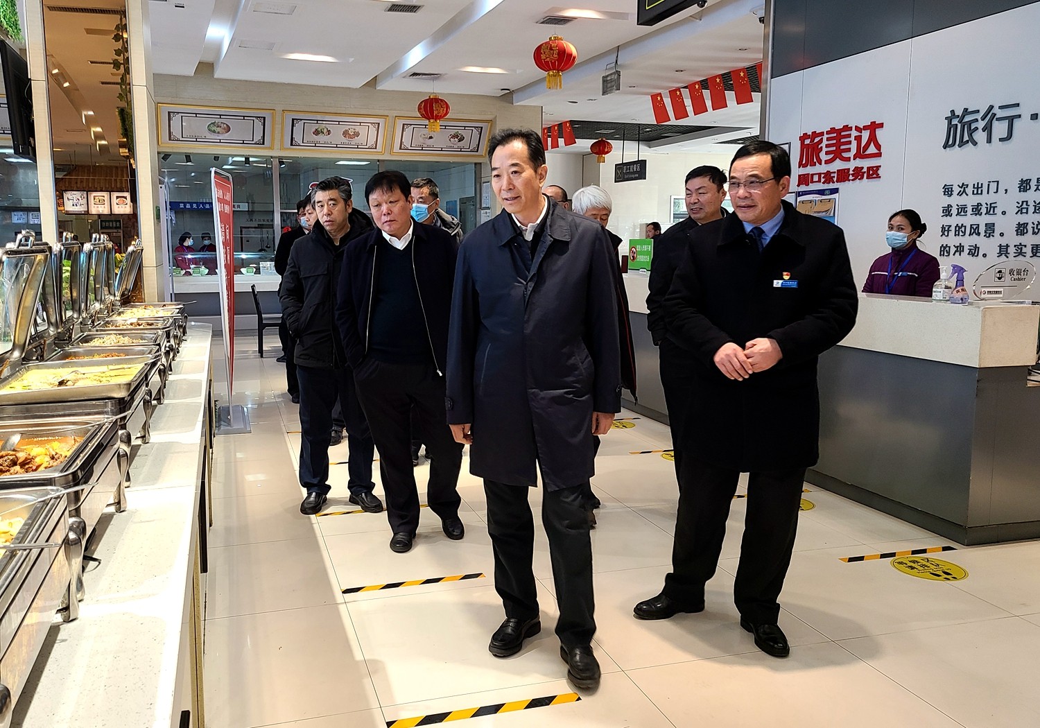 12月18日,江西省高速公路投資集團有限責任公司董事長王江軍、黨委辦公室主任袁細斌、財務部部長劉詳揚一行到鄭州北服務區考察交流,集團紀委書記王保月,公司董事長谷源、副總經理閻瑞杰等陪同考察。考察組一行現場實地查看了鄭州北服務區黨建活動室、餐廳、后廚、公共衛生間…