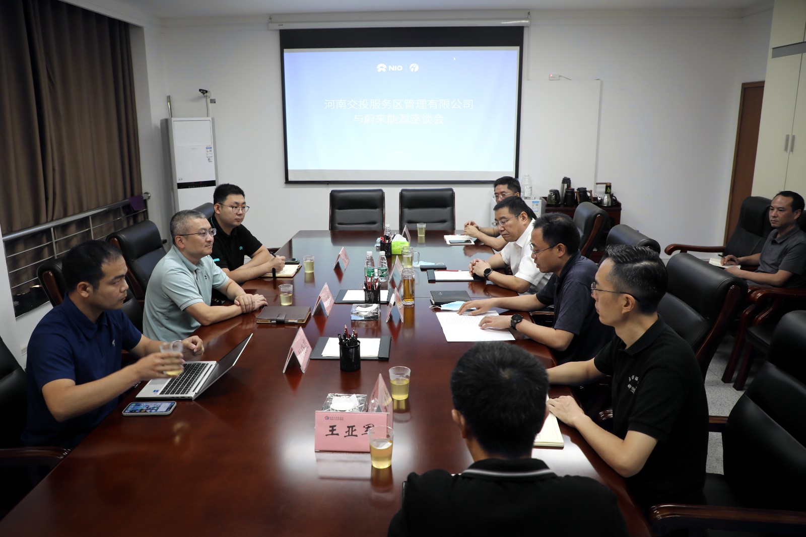 來源: 本站 發布時間: 2022-08-168月16日,蔚來集團副總裁、能源運營負責人吳鵬一行到公司座談交流,公司董事長谷源、副總經理閻瑞杰,經營開發部、直屬分公司相關負責同志參加會議。閻瑞杰副總經理重點介紹了公司概況及新能源在服務區的應用發展情況。吳鵬副總裁詳細介紹了蔚來集團基本概況、發展規劃及新能源…