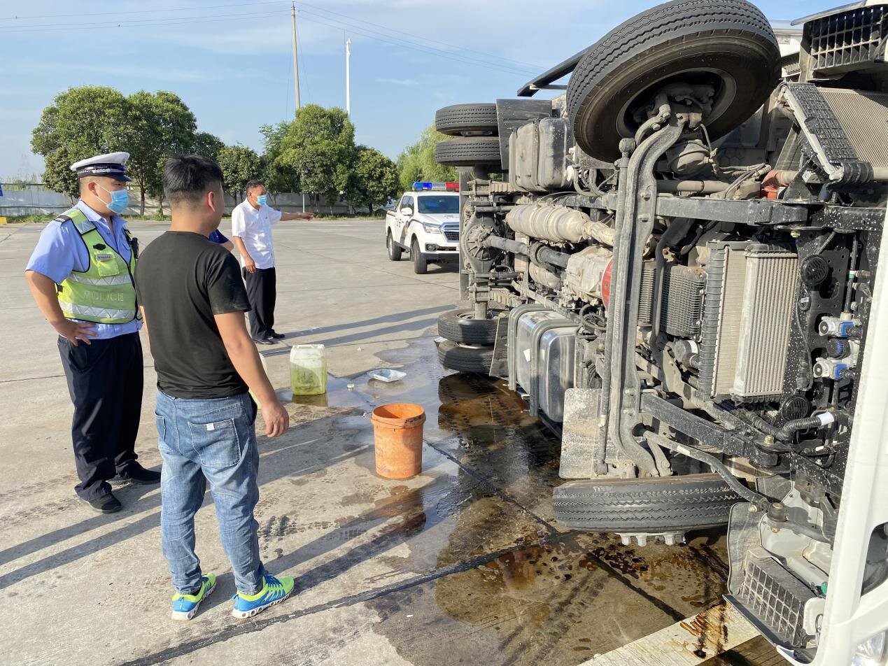 輕型卡車側翻漏油 項城服務區迅速處置