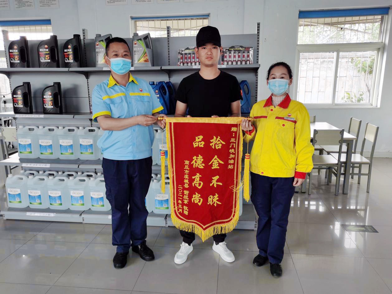 加油站員工拾金不昧 失主不遠百里贈錦旗致謝
