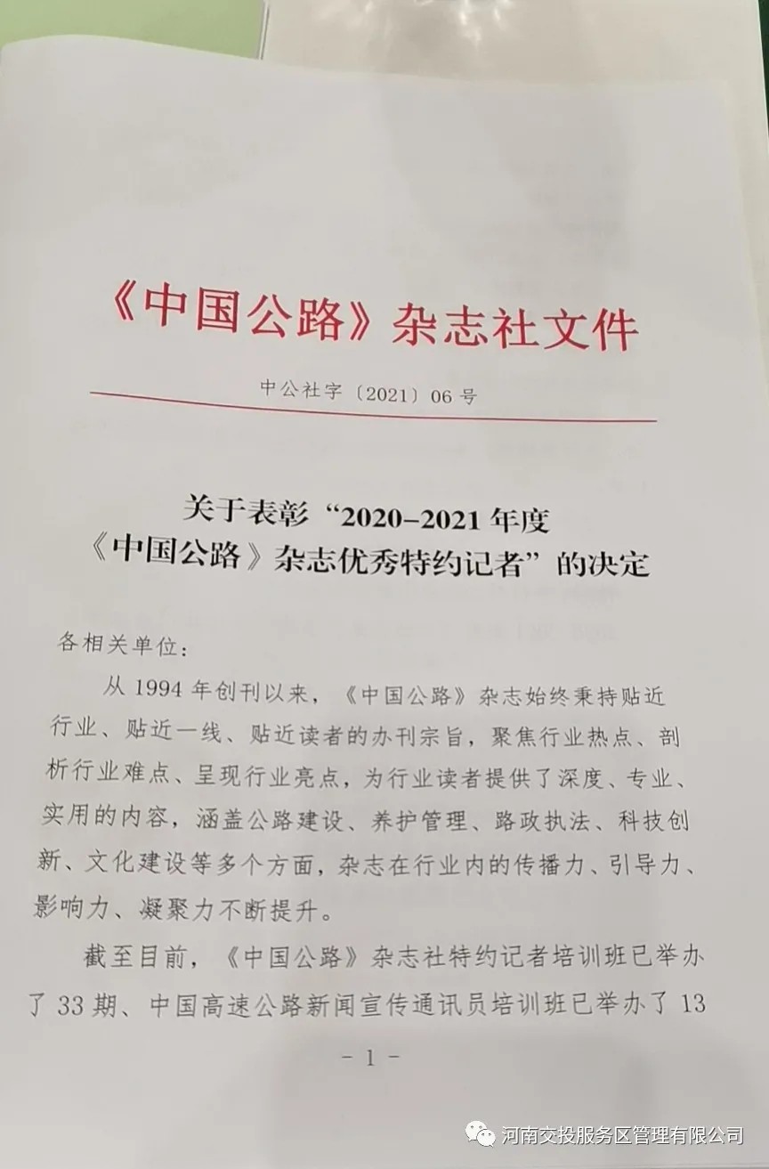 公司員工獲評(píng)“《中國(guó)公路》雜志2020—2021年度優(yōu)秀特約記者”